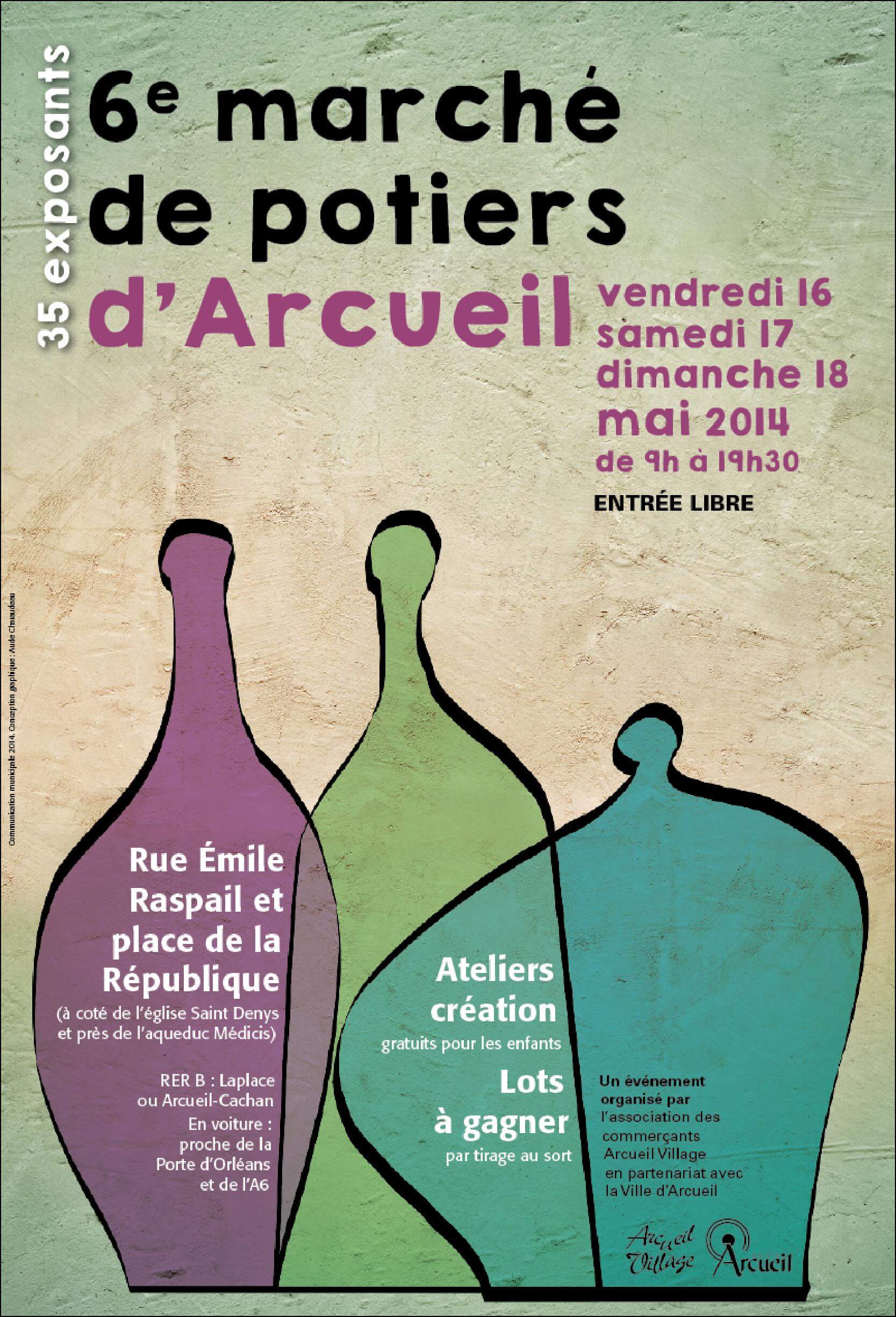 Pour le joli mois de mai, je trimballe mes pots, mes décors de ginkgo et de coquelicots jusqu’à la ville d’Arcueil, à l’occasion de son 6ème marché potier – c’est pas loin, y a même un arrêt de RER B…